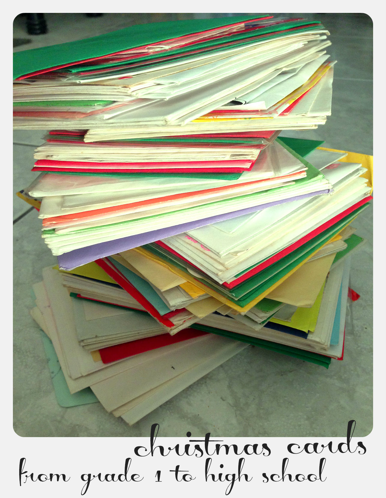 Hundreds of Christmas cards from grade 1 ’til 4th year high school!  I was a pack rat! hahaha