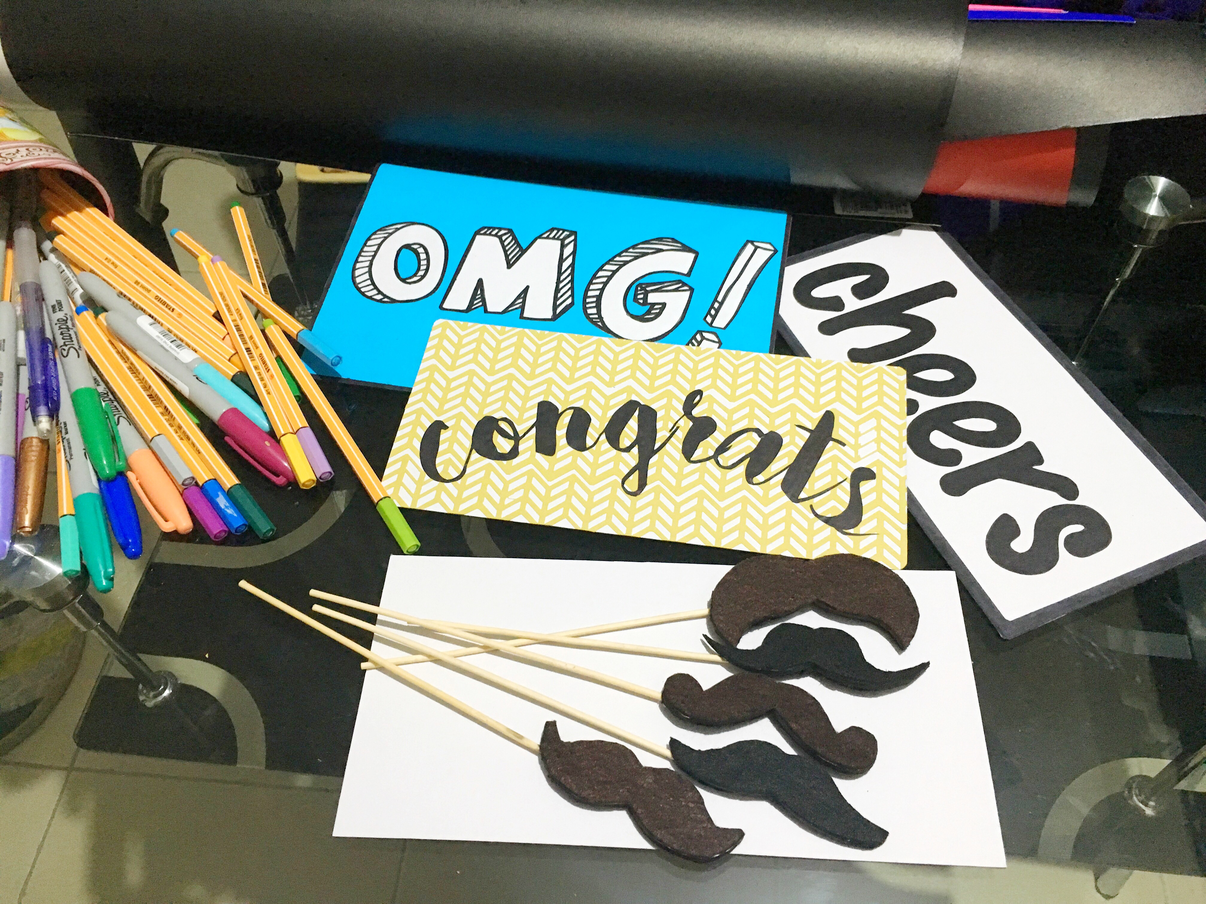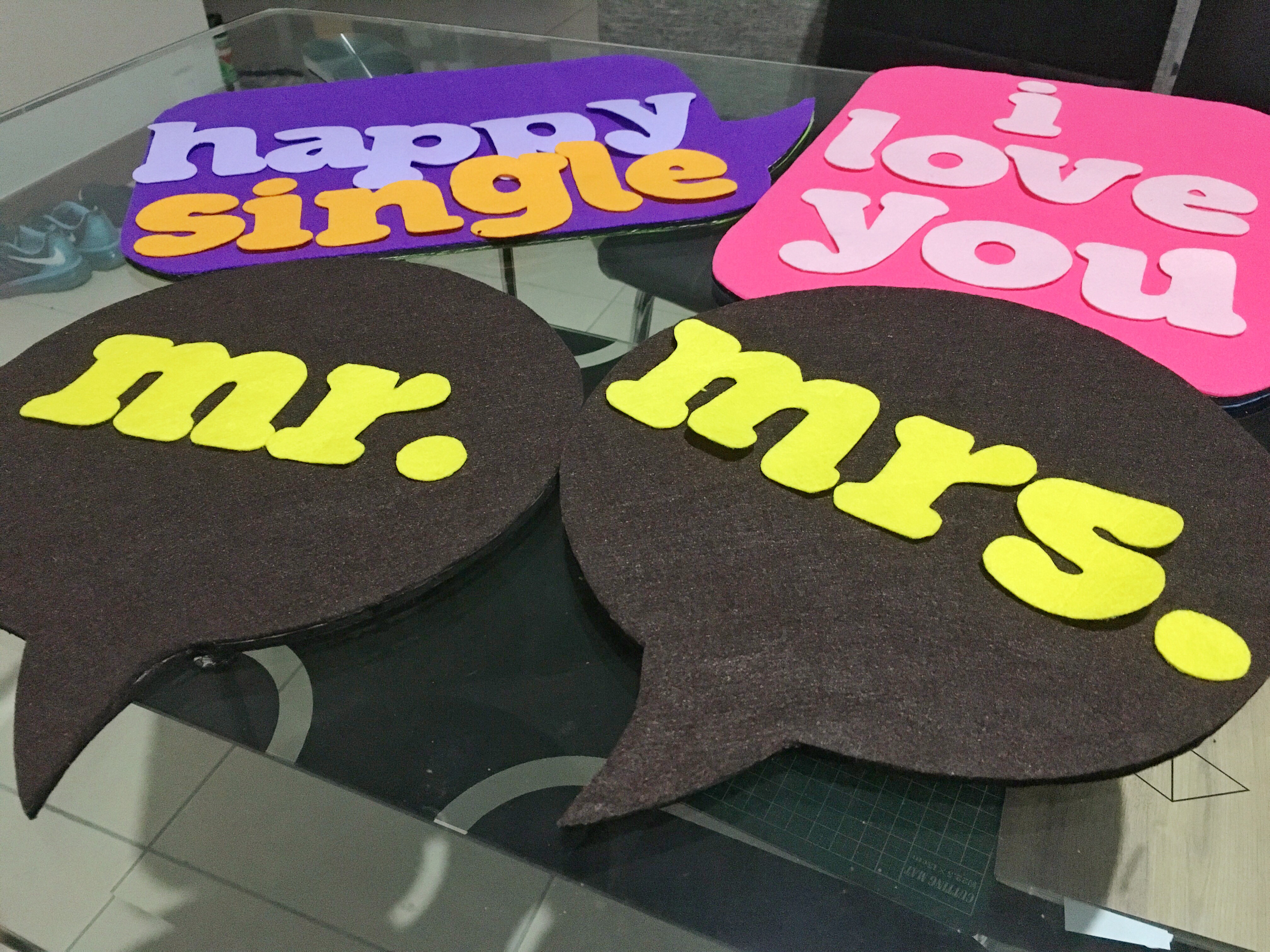 We chose not to rent a photobooth for the wedding. Instead, we asked our photographer to assign one of his crew to take the photos for us. This meant I have to DIY some props for the “photobooth”.