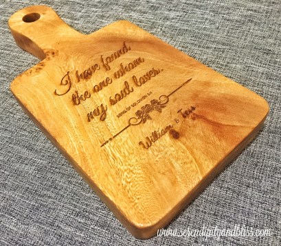 Personalized Cheeseboards from Katzen. This is the most affordable cheeseboard supplier I’ve come across with. This kind was Php 300 per cheese board if you’re using one of their default designs. It went up to Php 437.50 per cheese board based on the design we sent them. We’re quite pleased with the results! I will order one for myself after the wedding. Definitely. The supplier was very kind and they were able to answer my questions and accommodate my requests. Although we were only corresponding via email, they were able to reply promptly.