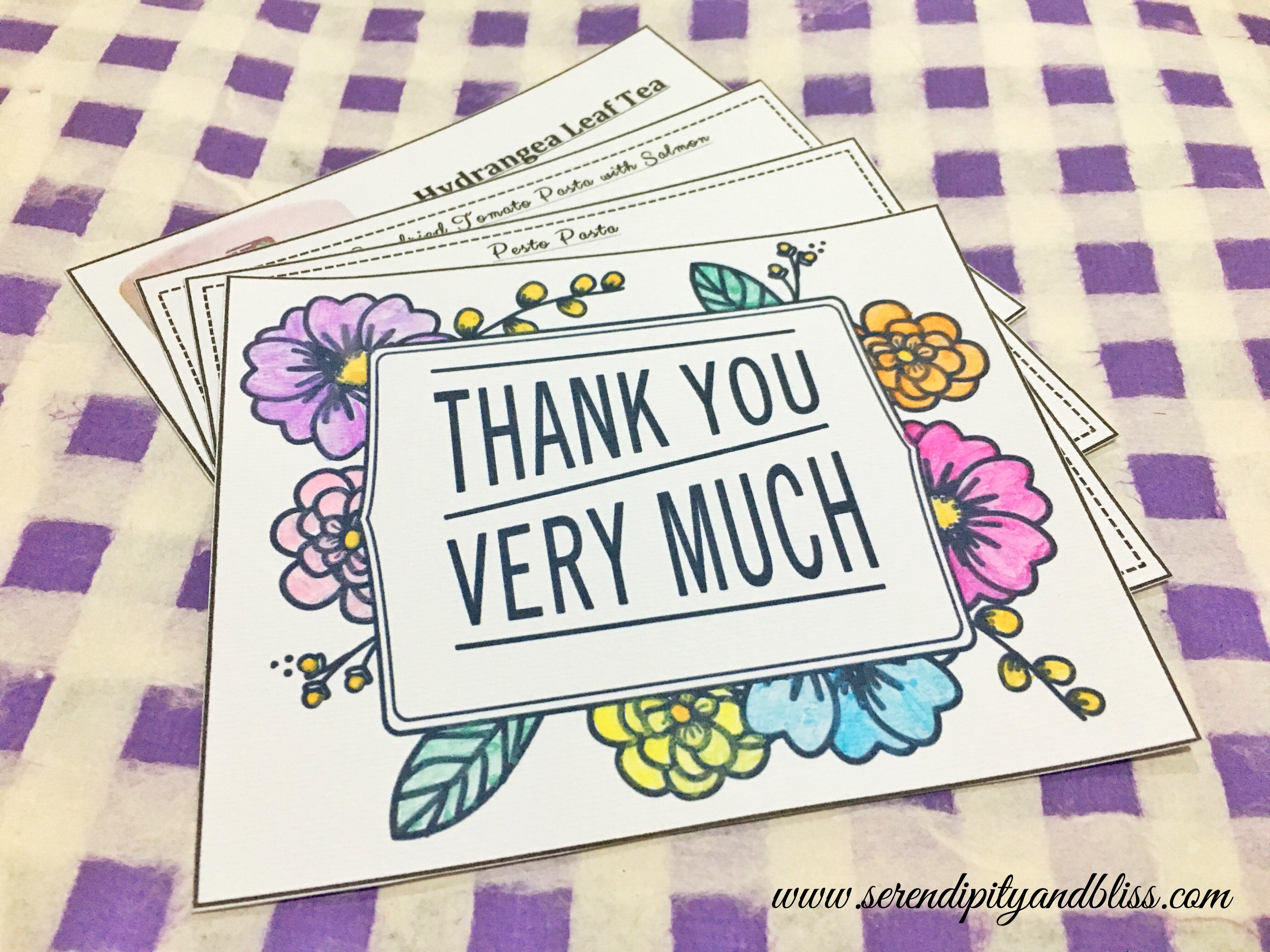 Others. I have also included recipe cards, instruction cards for the tea and thank you cards in each basket. We just printed them and I hand painted the details. We bought packaging materials at a local bookstore. Later on we decided to buy sinamay rolls in one of the random stalls along Tabora Street for packaging as well: Php 230 for 16 yards.