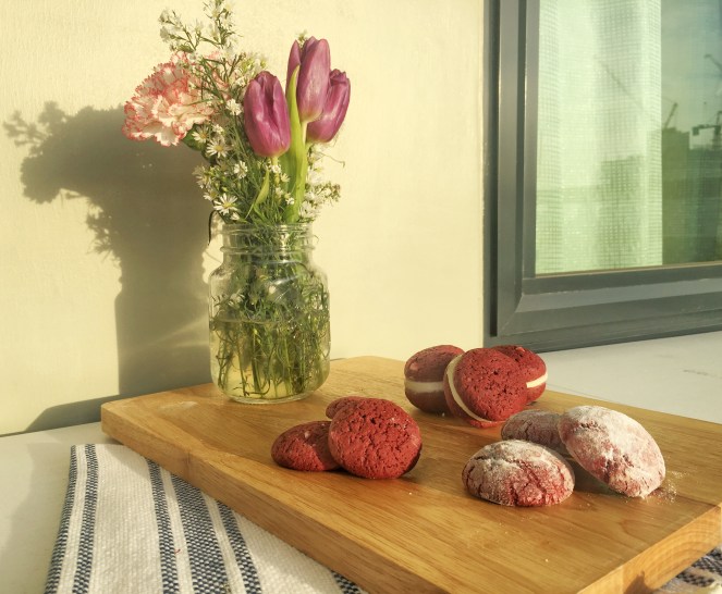 You can make it in 3 different ways depending on what you feel like doing: Red Velvet Cookies, Red Velvet Crinkles or Red Velvet Cookie Sandwiches.