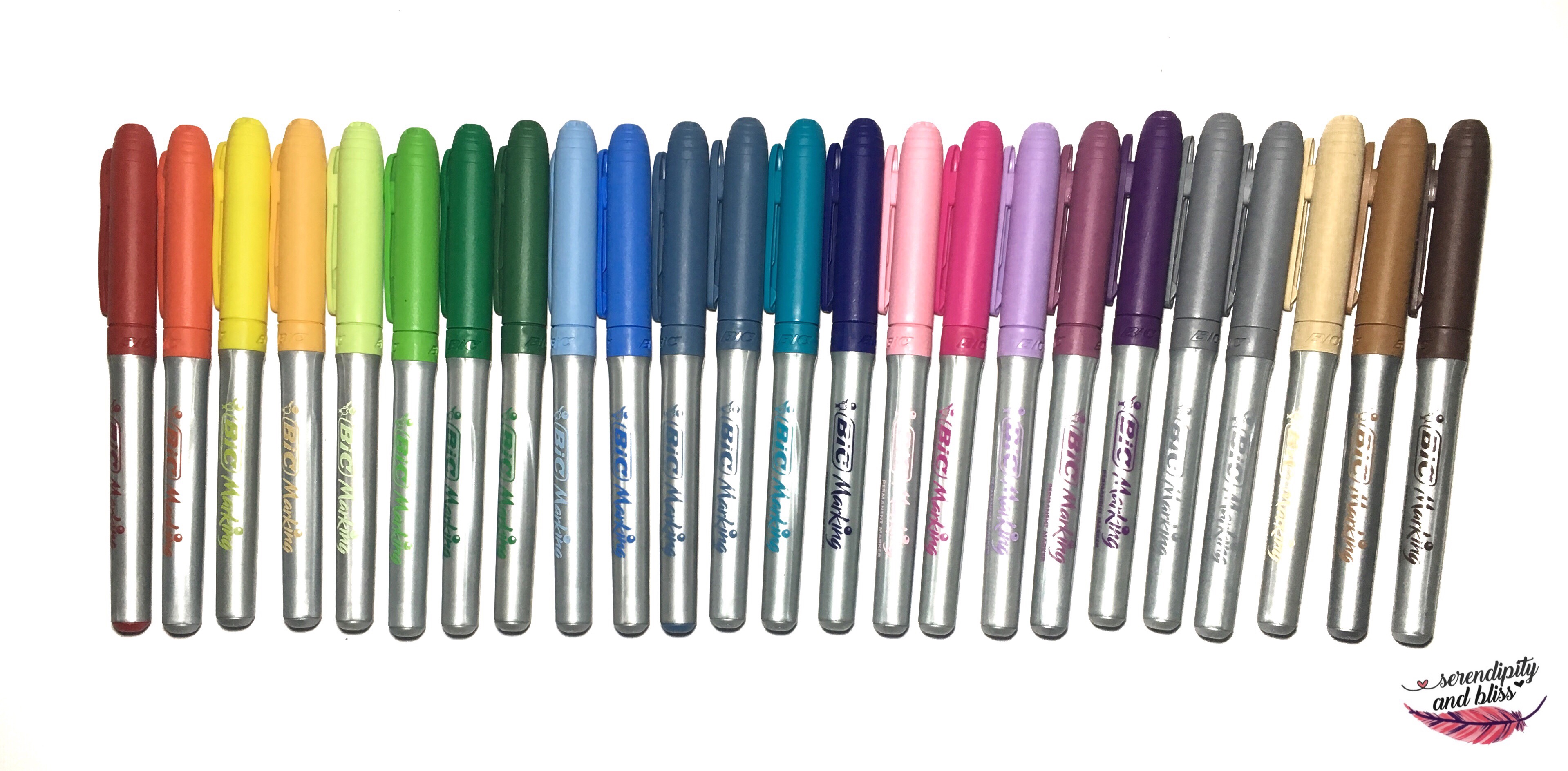 I bought these as a set some years ago, except for the bronze one, which I bought for a DIY project last year. The black one I have replaced a few times since the initial purchase. There are so much color additions now, I cannot keep up! These are my go-to markers.