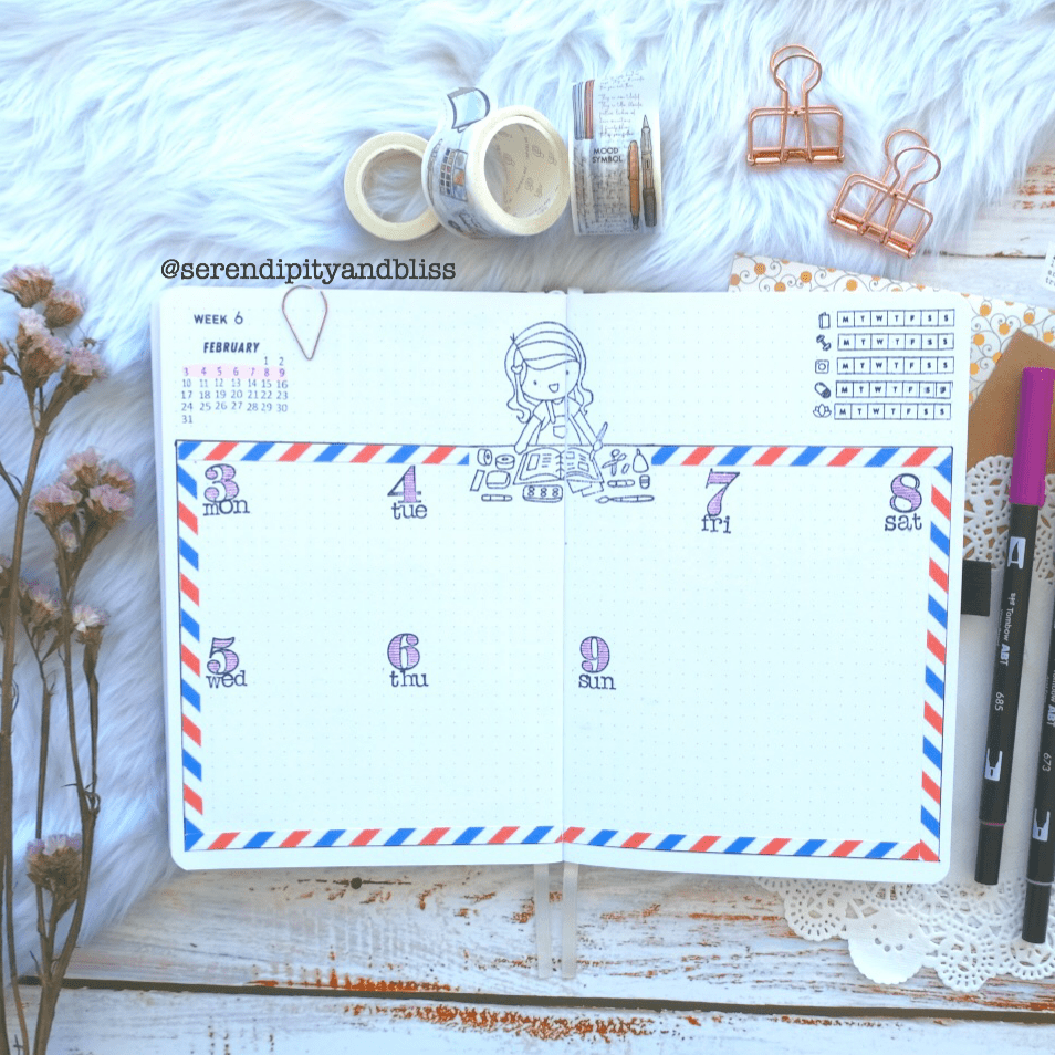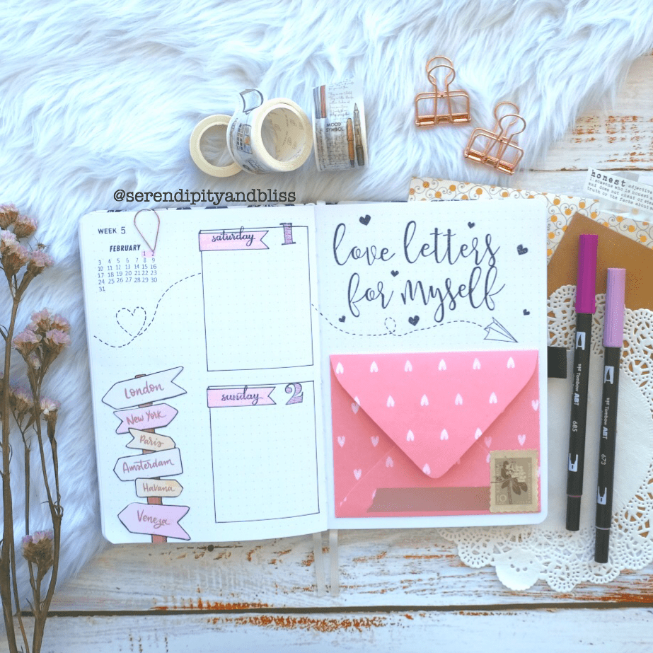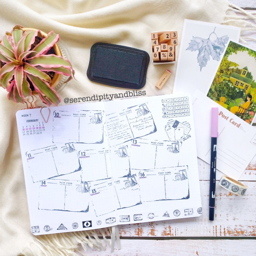 I have been into sending penpal letters and postcrossing recently and I decided to make that into a theme. I honestly didn’t want to make a valentine related spread because I have done that as it was featured in My Bullet Journal post in 2018.