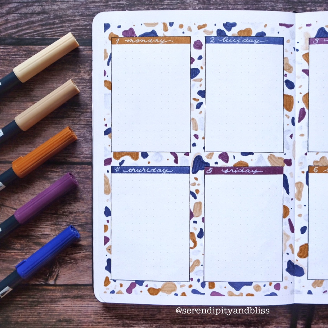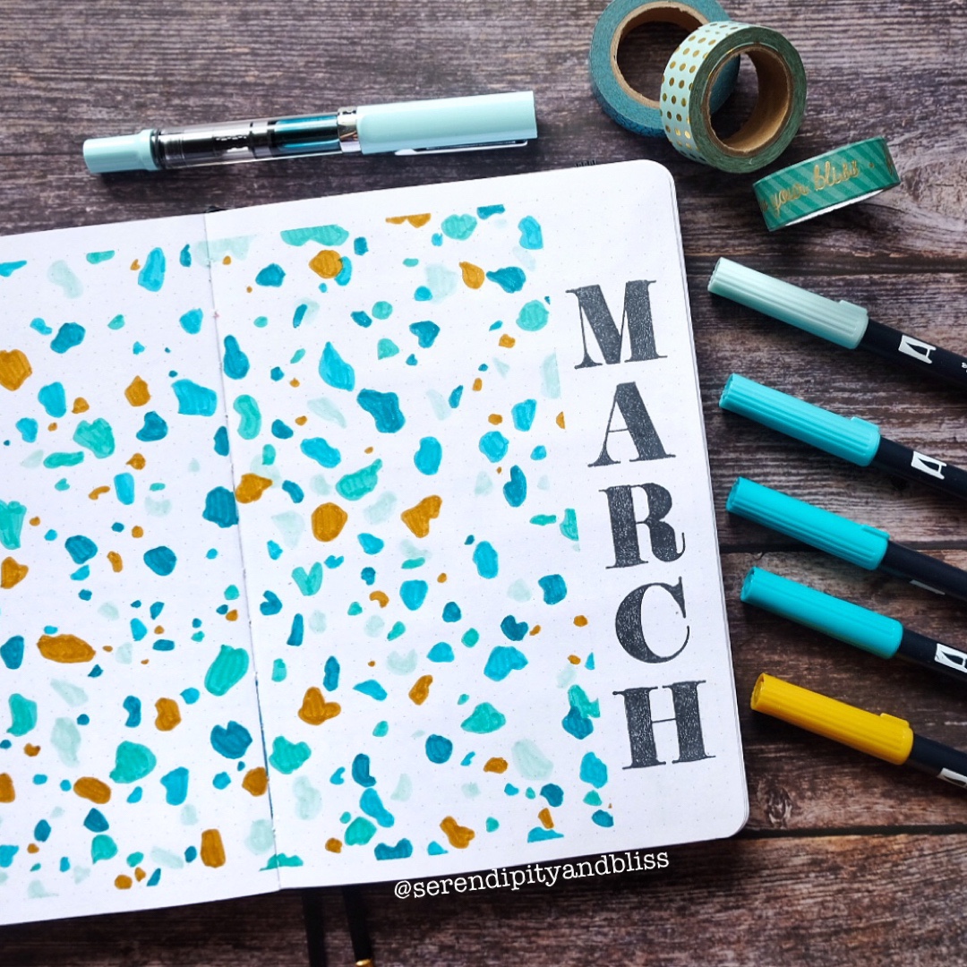 Today, I’m setting up my bullet journal for March. I’ve been seeing a lot of Instagram and Facebook ads for Terrazzo items and I feel it’s speaking to me. So that’s my theme for this month!